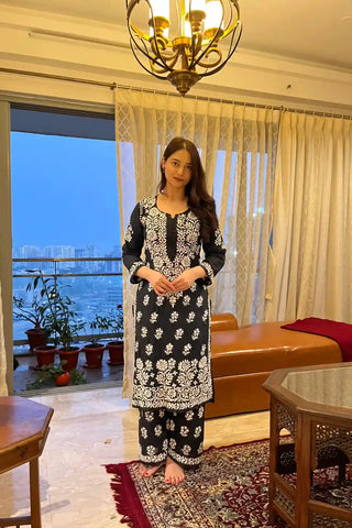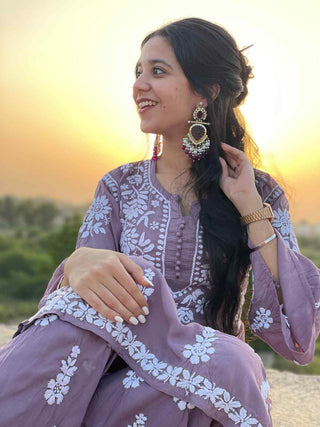 Shahi Mulmul Cotton Chikankari Kurta and Pant Set