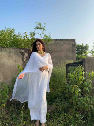 Chikankari, rooted in the rich embroidery of Indian history, has its origins in Lucknow, the city of nawabs and artistic beauty. This delicate art form emerged during the renowned Mughal Empire and flourished under the guidance of the royal court, adding to the clothes of kings and queens with intricate patterns and outstanding skill.... Chikankari has evolved over the ages into a symbol of beautiful style. Each stitch passed down through generations of talented artisans, captures the essence of tradition and the spirit of quality workmanship, resulting in masterpieces that speak to the soul. If you love Chikankari, our collection welcomes you to enjoy this timeless art, tailored for modern tastes.Explore Our Lakhnavi Chaikankari Collection