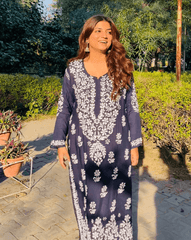 - Straight fit kurta with heavy chikankari embroidery on front and sleeves