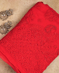 Anika Georgette Suit Set with Daman Addon Work (Red)