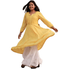 Indulge in the epitome of grace and style with our Cala Cotton A-Line Anarkali Kurti. Crafted from premium cotton, this Anarkali Kurti seamlessly combines tradition with contemporary fashion. The A-line silhouette flatters every body type, enhancing your natural elegance. Its exquisite design and comfortable fabric make it a perfect choice for both casual outings and special occasions. Elevate your wardrobe with this timeless piece that exudes sophistication and charm.