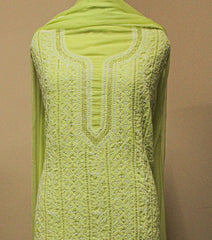 Indulge in the allure of nature with our Enchanting Greens: Izma Cotton Unstitched Suit Set. This three-piece ensemble features a luxurious green pure soft cotton fabric adorned with exquisite mukaish work. The lower portion boasts delicate butis, adding to its charm, while the dupatta is adorned with mesmerizing buttas and an intricate border. Embrace the elegance of simplicity and make a fashion statement that resonates with the tranquility of nature.