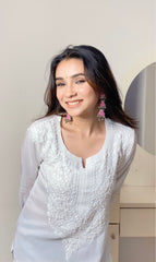 Nura Chikankari Short Modal Straight Kurti - Kashmiri Style Meets Lucknavi Chikankari (White)