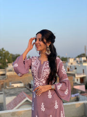 Step into the spotlight with the Zubiya Modal Set. A symphony of fashion-forward bell sleeves paired with an elegantly flared chikankari plazo, this two-piece set is a testament to timeless elegance. Meticulously crafted chikankari graces both the kurti and the plazo, weaving a tale of traditional charm. And with its modal fabric, rest assured, it's as soft as a whisper against your skin.